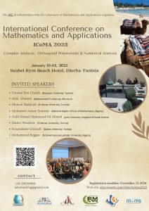 International Conference on Mathematics and Applications (ICoMA 2025) Complex Analysis, Orthogonal Plynomials and Numerical Analysis, 1st- 5th January, DJerba