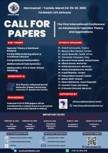 The First International Conference on Advances in Operator Theory and Applications, (ICAOTA2026), Hammamet – Tunisia, March 24-26, 2026