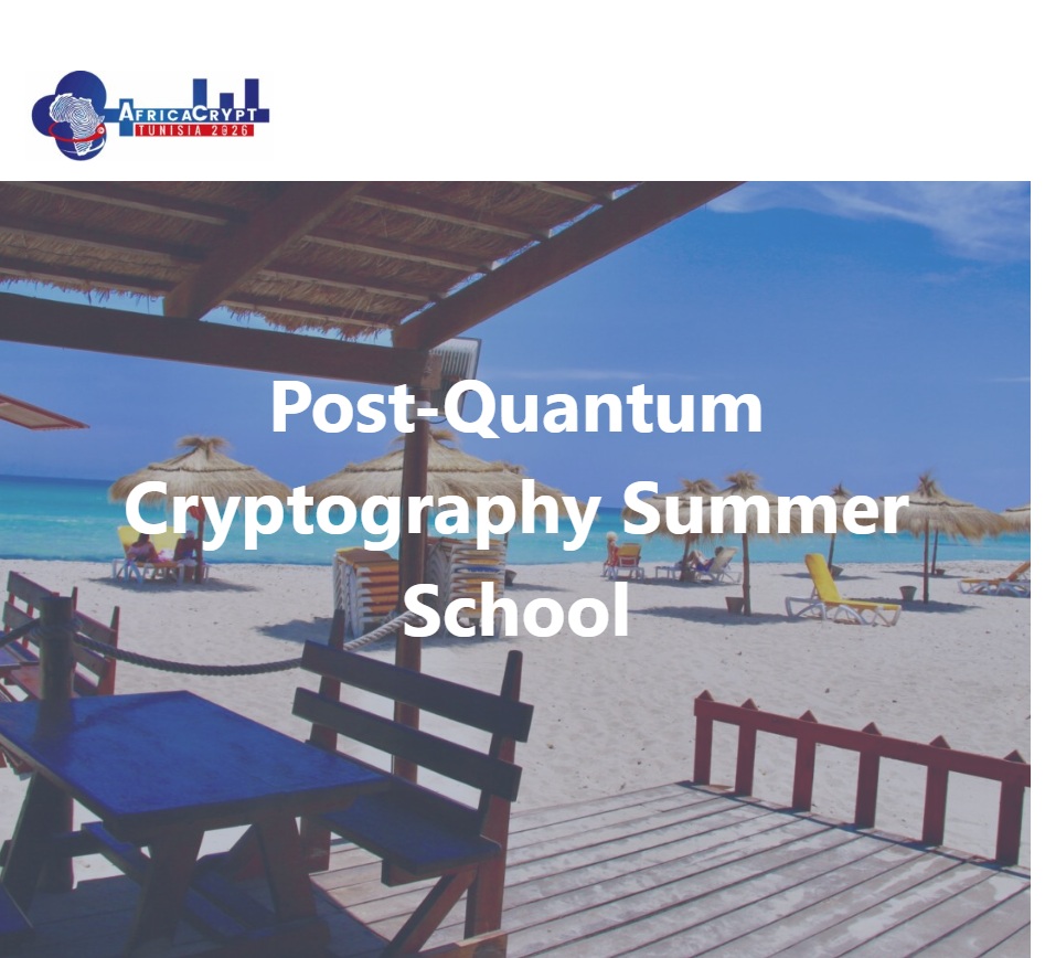 We are pleased to announce the Post‑Quantum Cryptography Summer School, an affiliated event taking place 6–7 July 2026, just before AfricaCrypt 2026. The summer school will be held in Hammamet, at the same hotel hosting the conference, making it easy for participants to attend both events. This two‑day program is designed to introduce participants to the foundations and current directions of post‑quantum cryptography, a rapidly evolving field preparing cryptography for the quantum era. The sessions will cover four major families of quantum‑resistant primitives: Symmetric Cryptography Introduction to Lattice‑Based Cryptography Introduction to Code‑Based Cryptography Introduction to Isogeny‑Based Cryptography The detailed schedule and the list of lecturers will be announced soon. We are committed to supporting the growth of cryptography research across the continent. For this reason, registration to the summer school is free for African students. Whether you are new to post‑quantum cryptography or looking to strengthen your understanding before the main conference, this summer school offers an excellent opportunity to learn from experts and connect with the AfricaCrypt community. Organizing Team: Nadia El Mrabet, Loubna Ghammam, Francisco Rodríguez Henríquez.